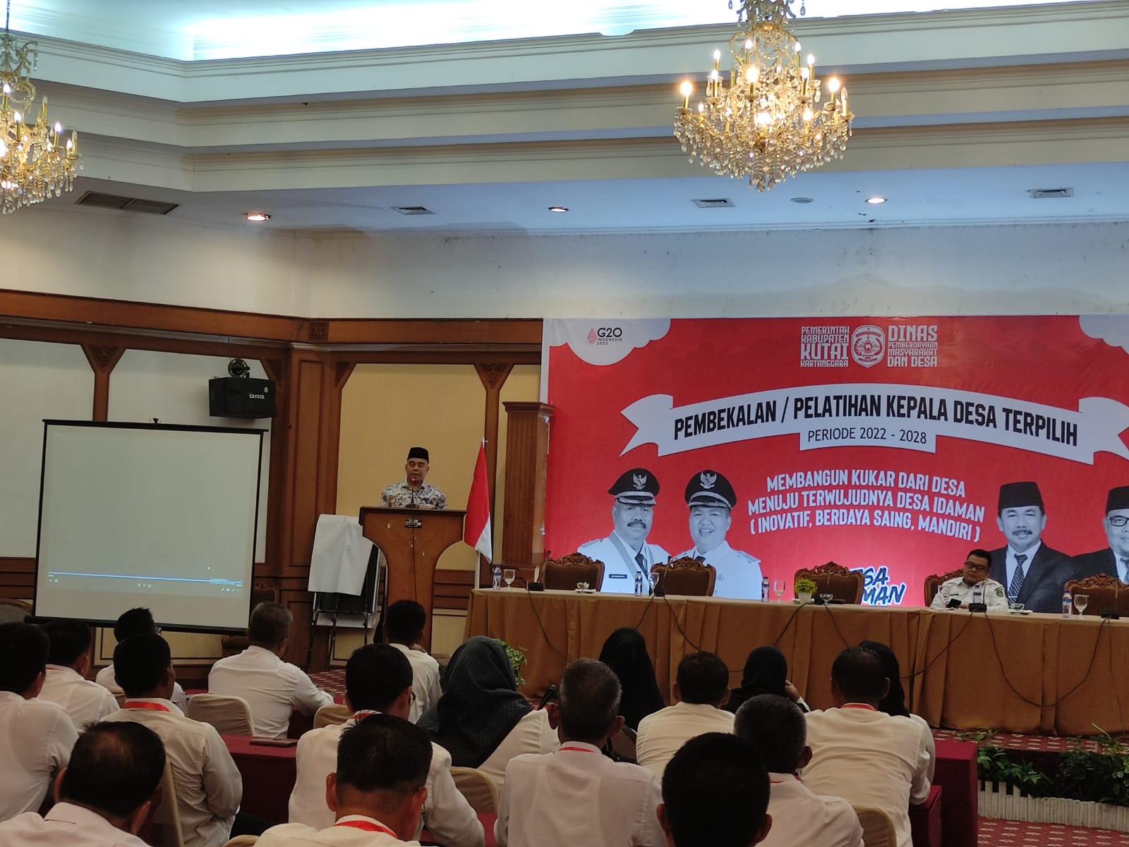 Kaltimkita.com, Kutai Kartanegara - 86 Kepala dDesa (kKades) terpilih ikuti acara pembekalan, pada Rabu (19/10/2022) malam, di Hotel Grand Elty Singgasana, Tenggarong, kegiatan ini dibuka langsung oleh Asisten I Setkab Kukar, Ahmad Taufik Hidayat.