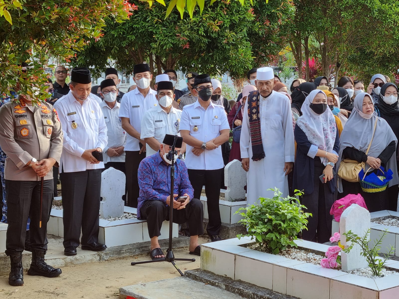 Gubernur Isran Noor saat memimpin pembacaan surat Yasin di pemakaman almarhum Imdaad Hamid
