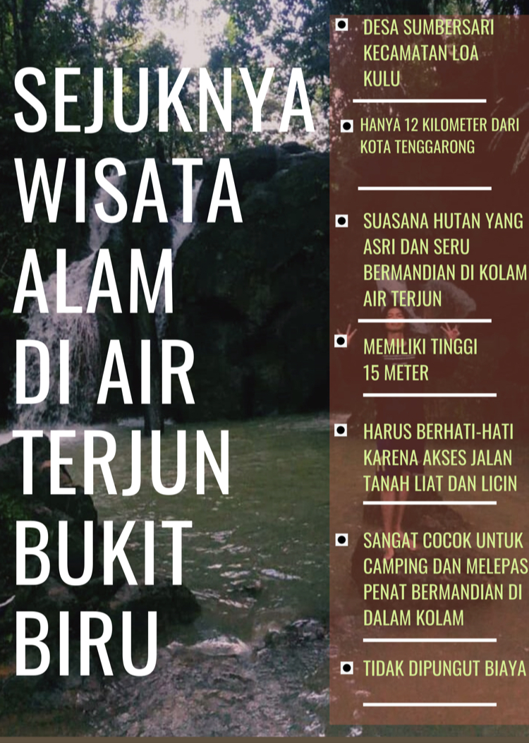 Kaltimkita.com, KUKAR - Kabupaten Kutai Kartanegara (Kukar) menyimpan segudang objek wisata alam, salah satunya yang dikenal Air Terjun Bukit Biru yang terletak di Desa Sumbersari Kecamatan Loa Kulu.