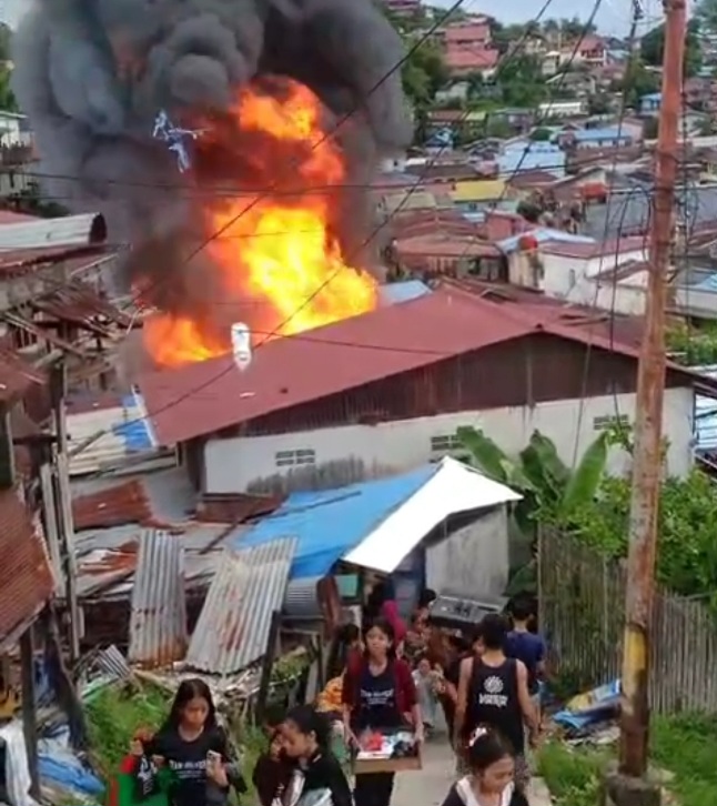 Api dengan cepat membesar dan menimbulkan asap hitam pekat yang membumbung tinggi ke udara. Peristiwa ini terjadi di belakang Masjid Al-Fallah. Warga terlihat panik dan berhamburan menyelamatkan diri serta berusaha mengevakuasi barang-barang berharga dari rumah mereka.