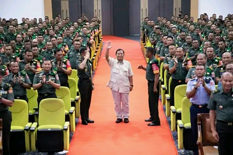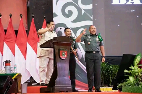 Seperti mewakili suara para Babinsa dan prajurit lainnya, Pangdam Mayjen Tri Budi Utomo mengungkapkan kebanggaannya mendapatkan kunjungan dari Jenderal Prabowo. Tepuk tangan terus membahana.