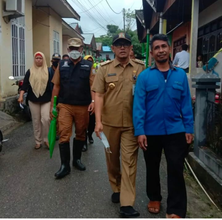 SIGAP: Camat Heruressandy didampingi Lurah Bambang saat mendampingi Ketua RT 26 Misran yang menjadi korban kebakaran.
