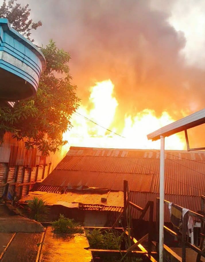 KaltimKita.com, BALIKPAPAN - Warga RT 26 Sepinggan, Kecamatan Balikpapan Selatan geger. Di tengah hujan gerimis, Senin (25/7) siang, tiba-tiba api berkobar. Ya, si jago merah mengamuk dan membakar 9 rumah, tepatnya di Jalan Intan, RT 26 Sepinggan. Persis di permukiman padat penduduk, belakang Pasar Sepinggan.