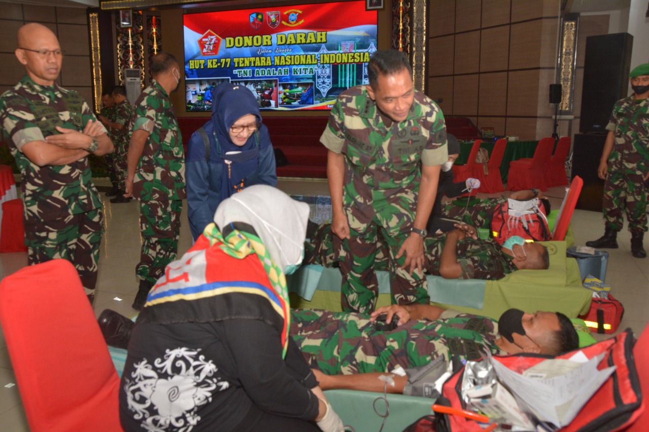 Sesuai dengan tema peringatan HUT Ke-77 TNI *"TNI adalah Kita",* TNI harus hadir sebagai solusi. Salah satunya adalah dalam bentuk kegiatan donor darah yang dilaksanakan hari ini. Adapun target pelaksanaan donor darah adalah 150 kantong darah.