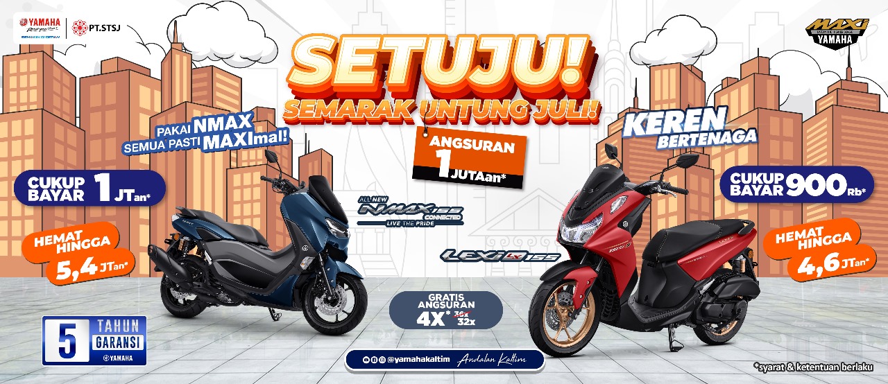 Karena itu mumpung bulan Juli, buruan kalian yang sudah mengimpikan untuk memiliki motor baru khususnya All New Nmax dan Lexi LX 155 buruan datang ke diler Yamaha terdekat. Dengan promo Setuju, Semarak Untuk Juli, akan memudahkan kalian bawa pulang motor Yamaha Impian. (*)