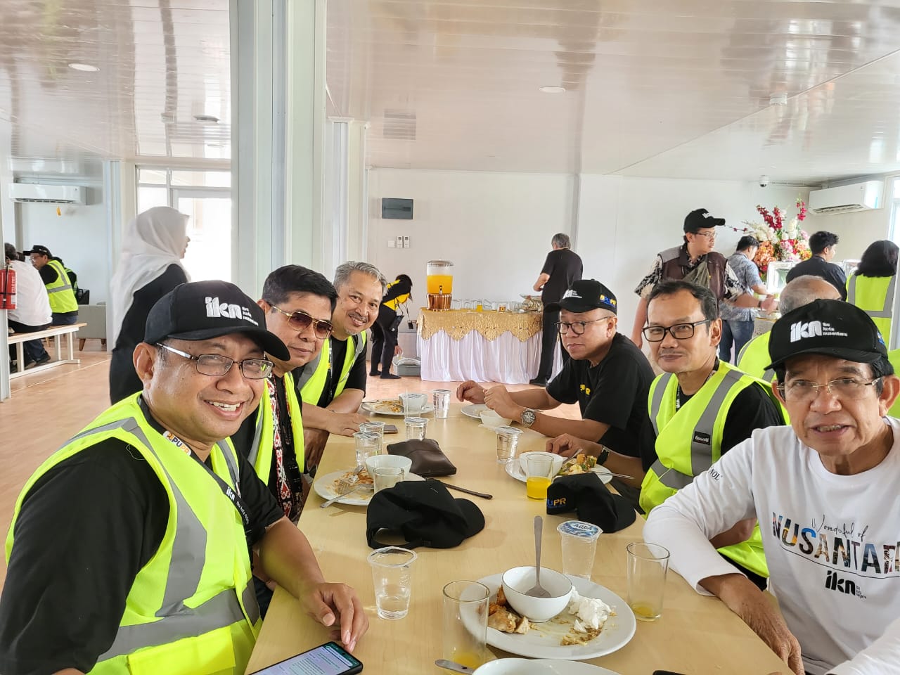 Desain mesjid yang alami membuat kami bisa shalat dengan khusuk dengan semilir angin yang bertiup. Setelah shalat rombongan Guru besar dan yang ikut serta diundang makan di salah satu ruangan Hunian Pekerja Konstruksi IKN. Sebenarnya kami ingin mencicipi makanan di kantin tapi tidak sempat karena padatnya acara.