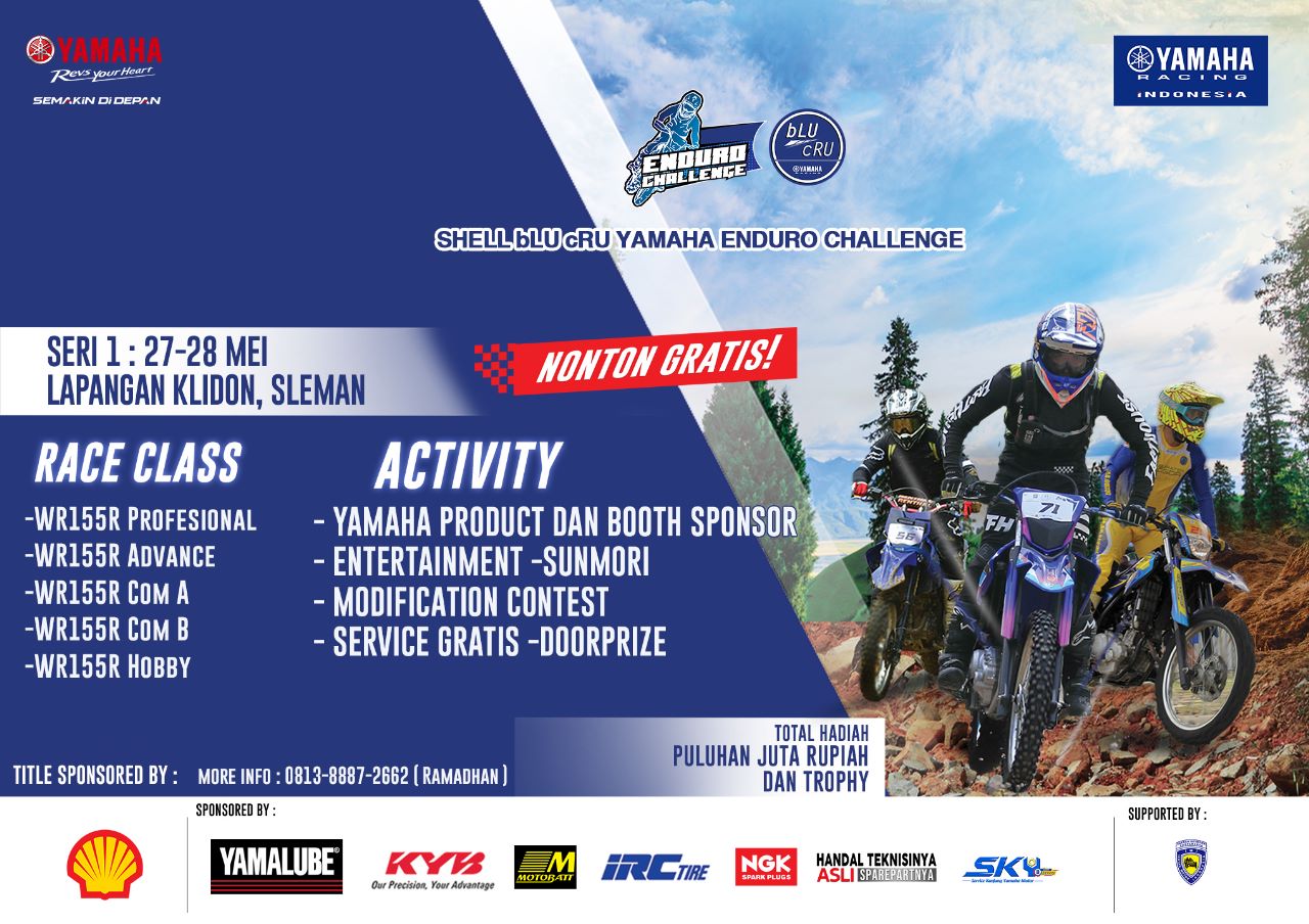 ”Dengan bangga kami mengumumkan SHELL bLU cRU Yamaha Enduro Challenge 2023 menjadi kompetisi bagi para penggemar dan komunitas off-road di Indonesia. Diperuntukkan bagi bLU cRU Private Racer, bLU cRU Pro Racer dan bLU cRU Fans yang akan merasakan sensasi dan pengalaman spesial dari kompetisi yang sangat berkualitas. Yamaha Indonesia juga akan konsisten menggelar ajang balapan bergengsi ini untuk merangkul semua penggemar bLU cRU sehingga mereka terus Enjoy, Skill Up dan Connect bersama-sama menikmati acara yang memiliki sensasi the real adventure, meningkatkan skill berkendara, saling terkoneksi satu sama lain, serta maju Bersama Yamaha Semakin di Depan Full Gaspoll,” ungkap Frengky Rusli, Asst. GM CS Division PT Yamaha Indonesia Motor Manufacturing (YIMM).
