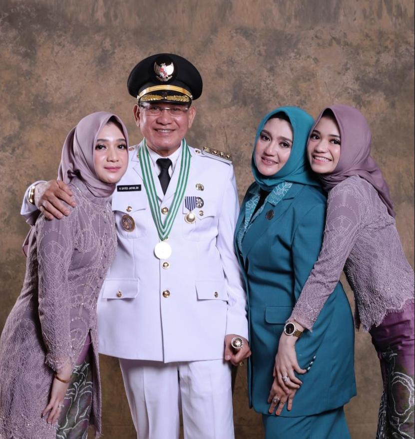 Syaima (kiri) bersama sang ayah, Bupati Kotabaru Sayed Jafar dan istri serta adik kandungnya.