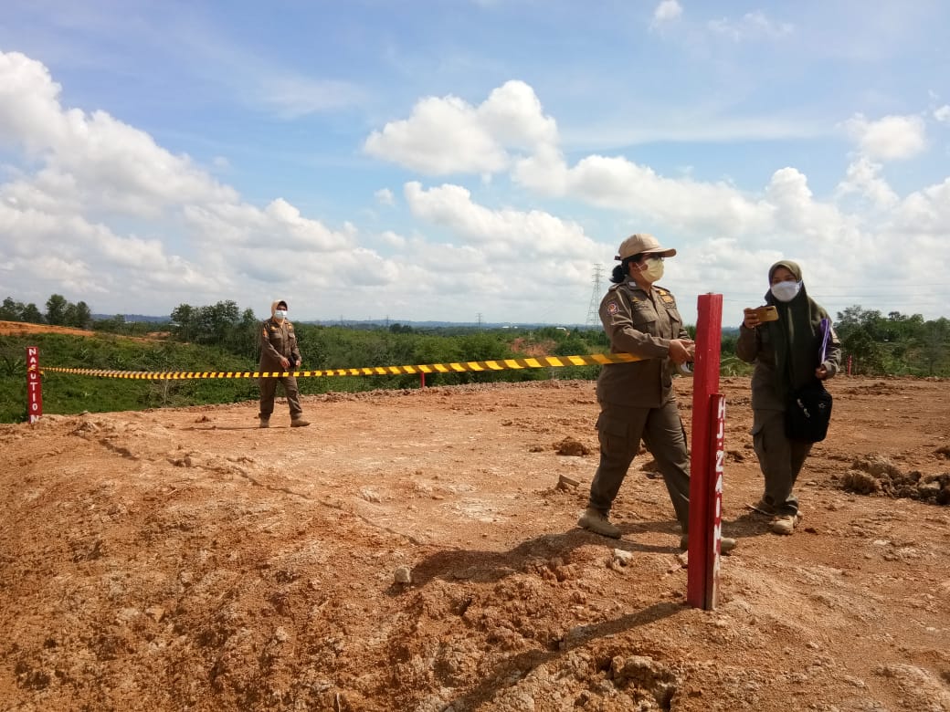 Satpol PP saat menutup kegiatan proyek pembukaan lahan milik Eni dengan memagari Police Line