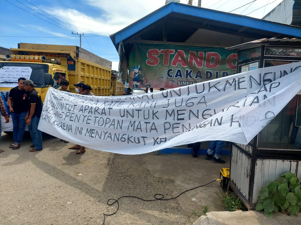 Menariknya, tuntutan mereka bukan ditujukan ke pemerintah, melainkan kepada warga dan tokoh masyarakat yang selama ini menolak truk tambang melintas di jalan negara.