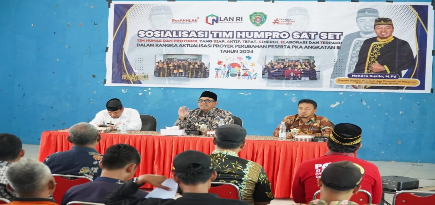 Humas dan Protokol juga merupakan ujung tombak dalam penyebaran informasi yang akurat dan tepat sasaran, serta dalam menjaga tata cara dan etika acara formal maupun informal di lingkungan pemerintahan. Perihal ini disampaikan Penjabat (Pj) Bupati PPU, Muhammad Zainal Arifin saat membuka sosialisasi program Humas Protokol Siap, Aktif, Tepat, Sinergi, Elaborasi, Terpadu (Humpro Sat-Set) kepada unsur kecamatan, kepala desa dan perangkat desa se-Kecamatan Babulu, Jumat, (25/10/2024).