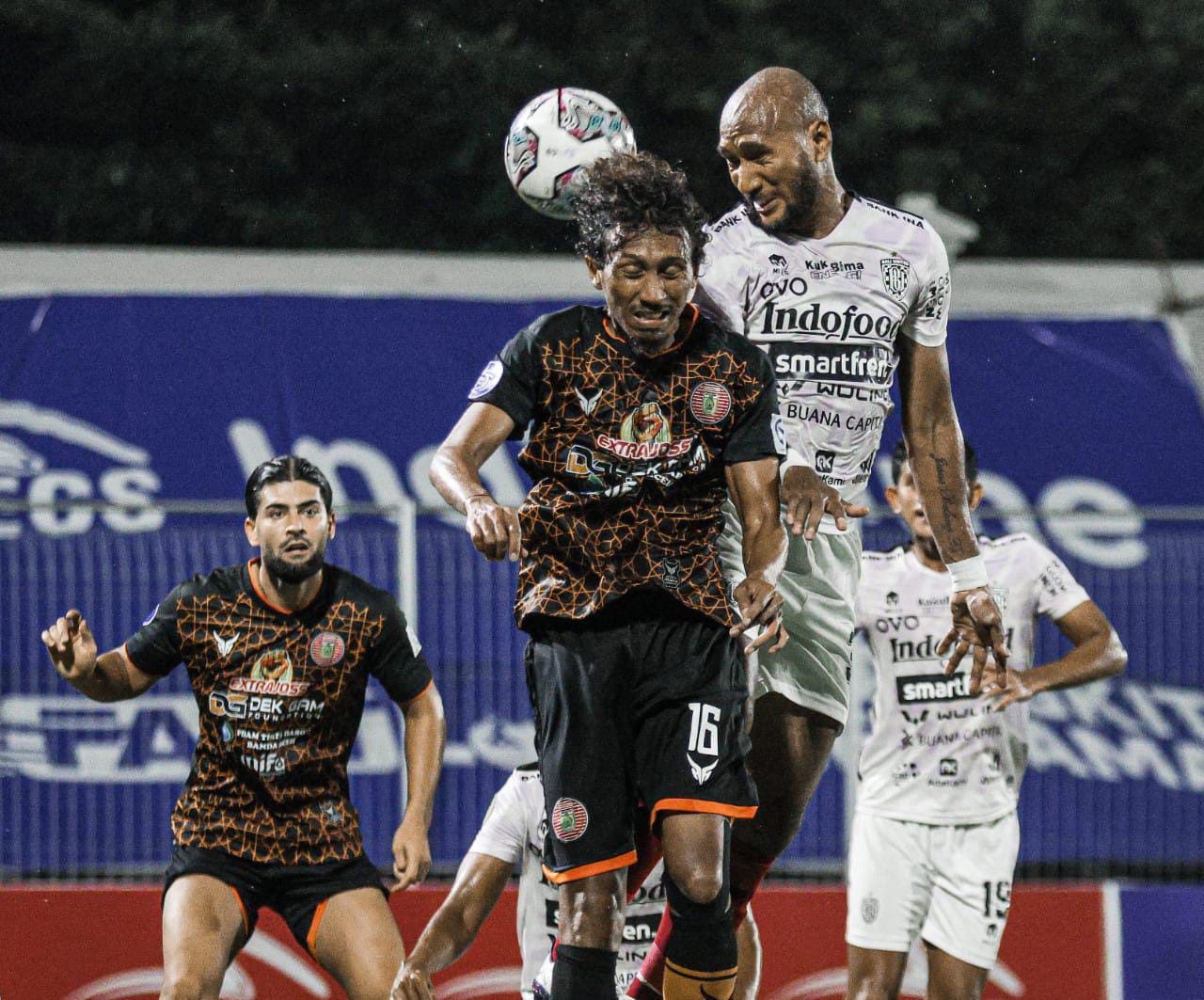 Kaltimkita.com, Denpasar - Pribat Mbarga lagi-lagi menjadi pelayan abadi bagi seorang Ilija 'Spaso' Spasojevic. Umpan rekrutan anyar putaran kedua ini dimenit ke-37 dimanfaatkan Spaso dengan sempurna untuk menjebol gawang Persiraja kala kedua tim berduel dilaga pekan ke-30 BRI Liga 1,Jumat (11/3/2022) malam di Stadion Kompiang Sujana, Denpasar.