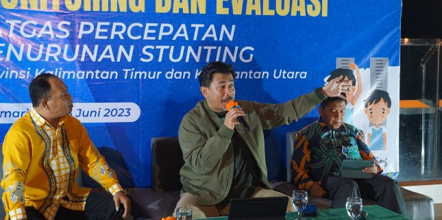 Sunggono menjelaskan kondisi Geografis Kukar, permasalahan Gizi dan Inovasi percepatan penurunan stunting melalui Gerakan keluarga peduli pencegahan dan atasi stunting (Ragapantas).
