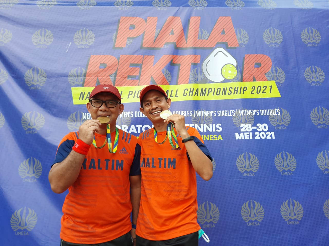 Pasangan Baharuddin-Arifin yang meraih medali emas di Unesa National Pickleball Champhionship di Surabaya.