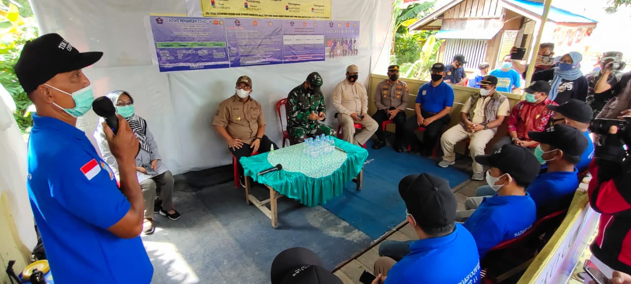 Dalam kunjungan lapangan ke posko Covid-19 RT, Satgas juga memberikan bantuan masker untuk petugas satgas RT dan masyarakat. (lie)