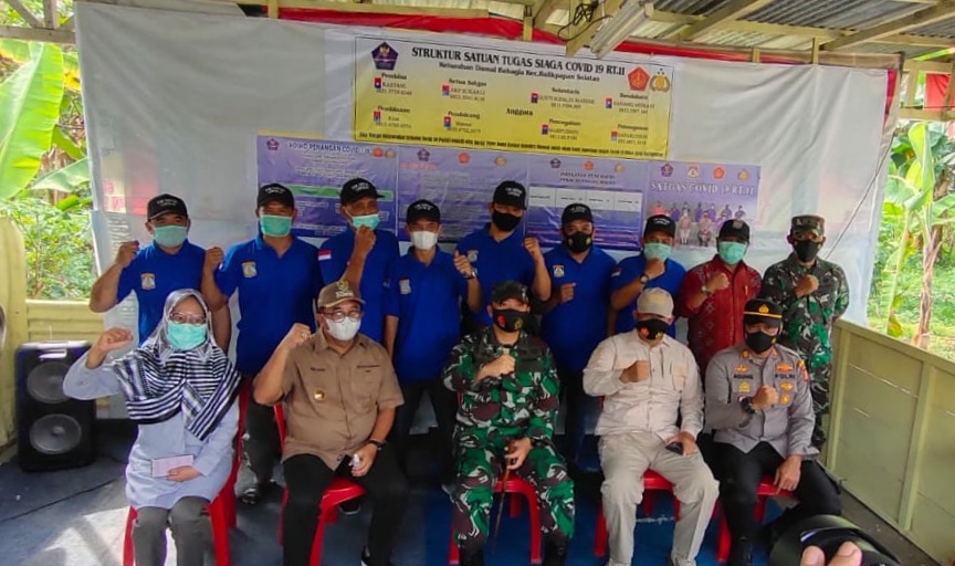 SINERGI: Tim Satgas Covid Kota Balikpapan foto bersama Satgas RT 11 Damai Bahagia yang dipimpin Kastani.