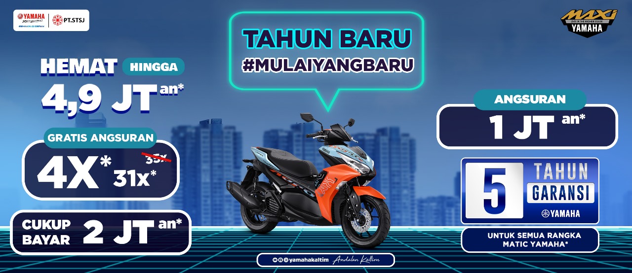 Bagi kalian yang ingin merasakan kencangnya tarikan All New Aerox 155 VVA, Yamaha Kaltim sudah menyiapkan promo terbaiknya. Promo Tahun Baru #mulaiyangbaru menjadi kunci untuk membawa pulang Yamaha All New Aerox dengan cara yang gak ribet alias mudah.