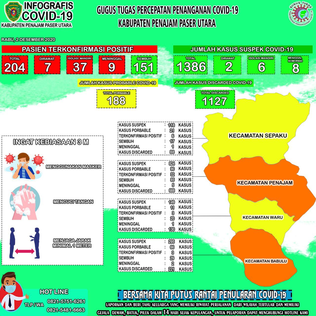KaltimKita.com, PENAJAM- Kasus virus corona atau covid-19 di Kabupaten Penajam Paser Utara (PPU) menembus angka 204. Juru Bicara Pemkab PPU Terkait Penanganan Covid-19 sekaligus Pelaksana tugas (Plt) Kepala Dinas Kesehatan (Dinkes) PPU dr. Jansje Grace Makisurat mengatakan, jumlah pasien terkonfirmasi positif corona bertambah 8 orang pada Rabu (2/11).