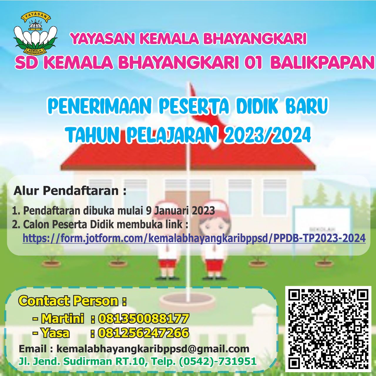 KaltimKita.com, BALIKPAPAN - SD Kemala Bhayangkari 01 Balikpapan membuka pendaftaran untuk siswa baru periode 2023/2024. Dibuka sejak 9 Januari 2023.