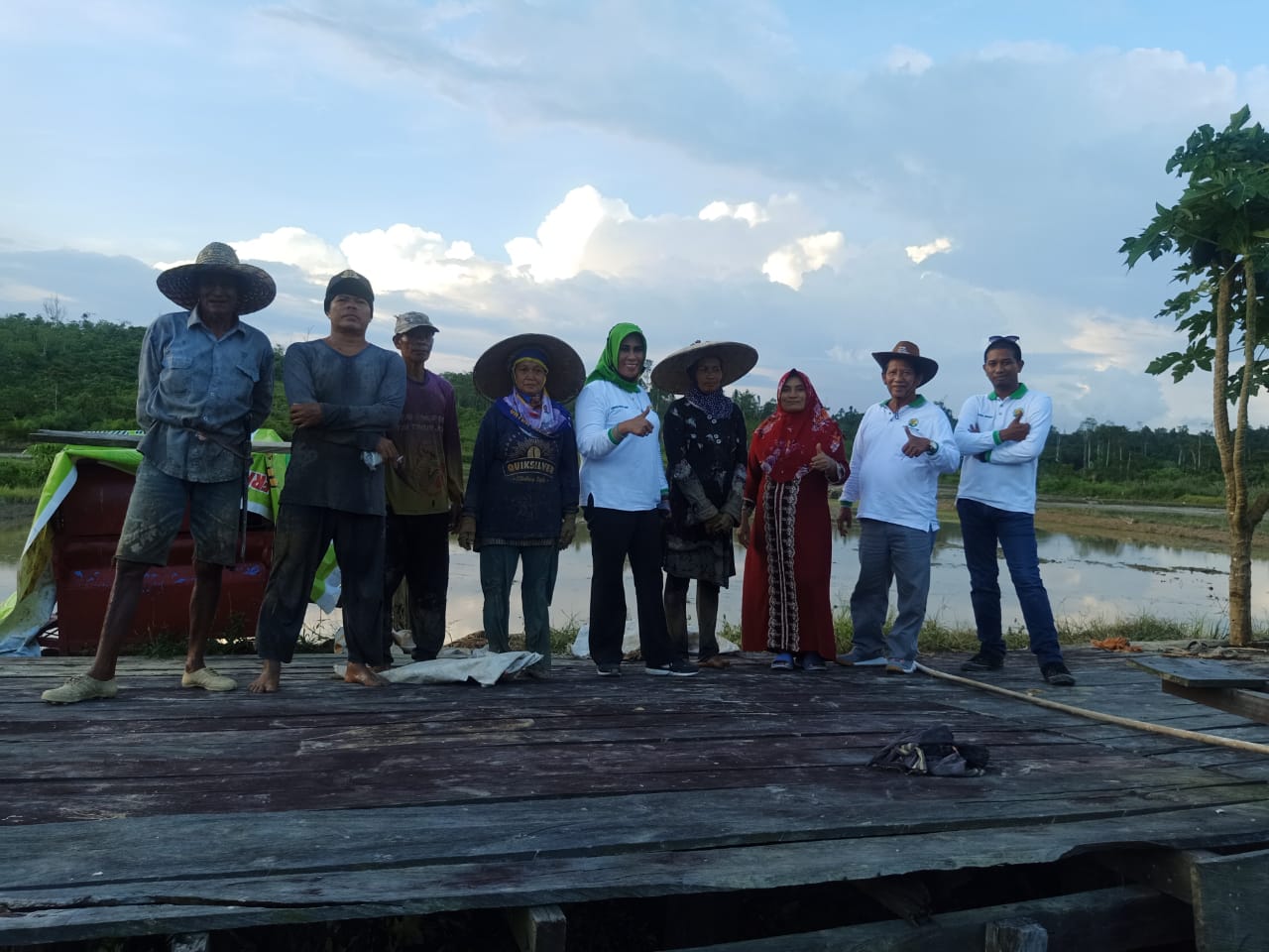 Sebelum ke lahan pembangunan pabrik CPO sawit di Kutim Pembina Tani Karya yang juga anggota dewan Kutim Kidang melihat hasil padi gunung.