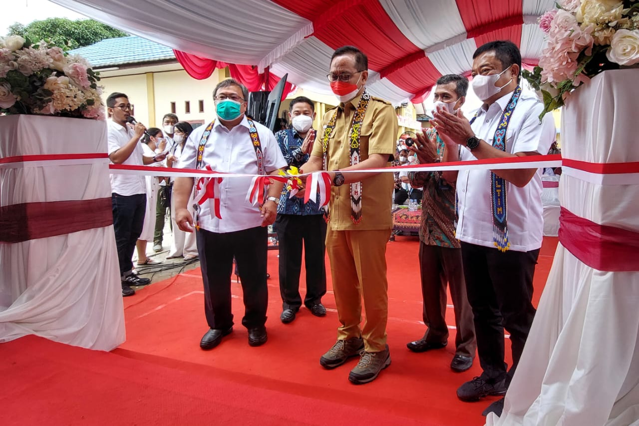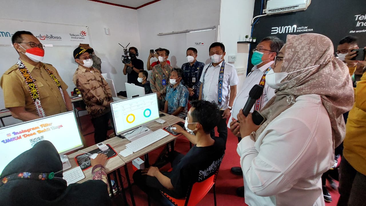 Kepala OIKN didampingi Komisaris Utama dan Direktur Utama Telkom Indonesia meresmikan Pusat Komunitas Digital Sepaku di desa bukit raya.