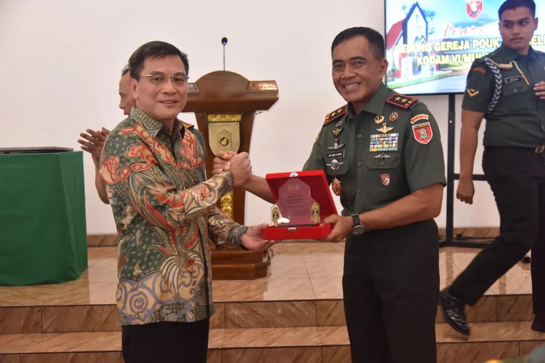 “Gereja ini dapat dimanfaatkan sebagai tempat ibadah sekaligus sebagai tempat komunikasi sosial dan sarana silaturahmi bagi Prajurit maupun PNS Kodam VI/Mulawarman serta masyarakat sekitar yang beragama Nasrani. Gereja ini bisa juga menjadi tempat kegiatan-kegiatan perayaan hari besar, diskusi dan kajian agama untuk meningkatkan ketaqwaan serta memperkuat keimanan kepada Tuhan Yang Maha Esa.”isi pesan Pangdam VI/Mlw di akhir amanatnya. (Pendam VI/Mlw)