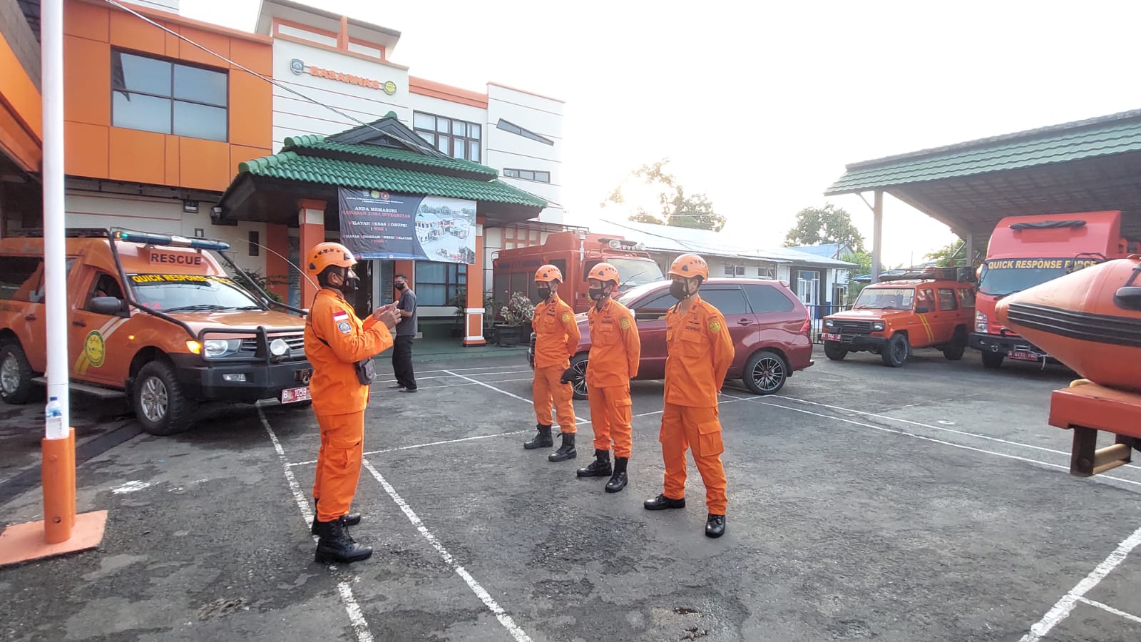 Tim SAR saat melakukan briefing sebelum melakukan pencarian korban tenggelam di Bendungan Sungai Wain.