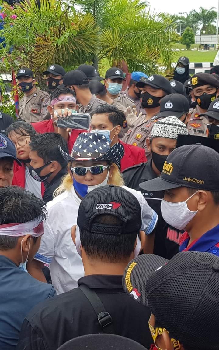 Adi Gondrong kala menemui ratusan rekan-rekan tenaga kerja (buruh), adik-adik mahasiswa dengan penampilan khas-nya ala “country” tak lepas dari kaca mata hitamnya ryban tampak intens membuka dialog langsung untuk saling sharing menampung pendapat aspirasi terkait penolakan UU Cipta Kerja Omibuslaw.