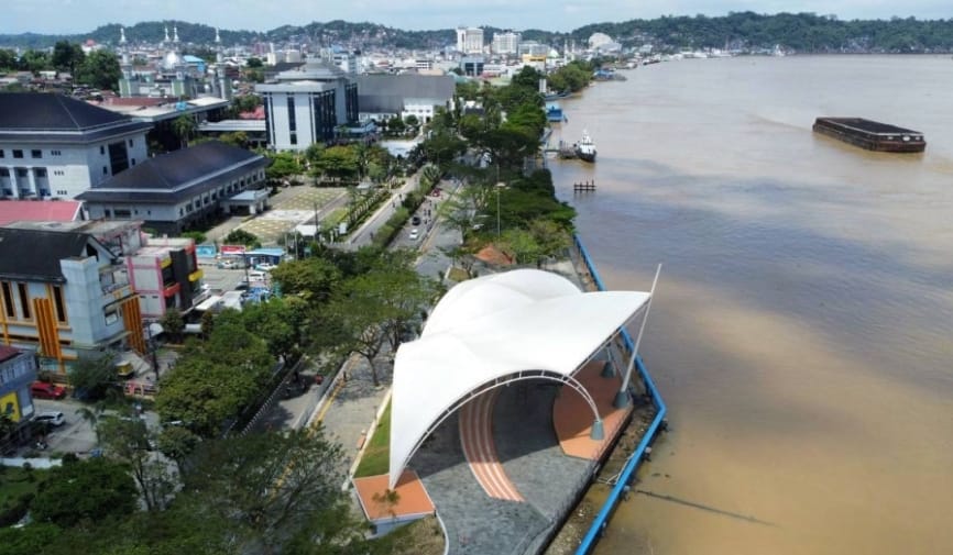 TEPIAN MAHAKAM di Samarinda punya wajah baru. Namanya Teras Samarinda. Itu adalah proyek penataan ruang terbuka hijau (RTH) sepanjang Jl Gajah Mada terutama dari Pelabuhan Pasar Pagi sampai depan Kantor Gubernur. Di seberang Kantor Gubernur ada bangunan dengan desain yang unik dan futuristik. Terutama bentuk atapnya. Di situ ada panggung dengan amphitheater dan tata lampu yang lengkap. Pengoperasiannya diatur secara profesional melalui aplikasi.