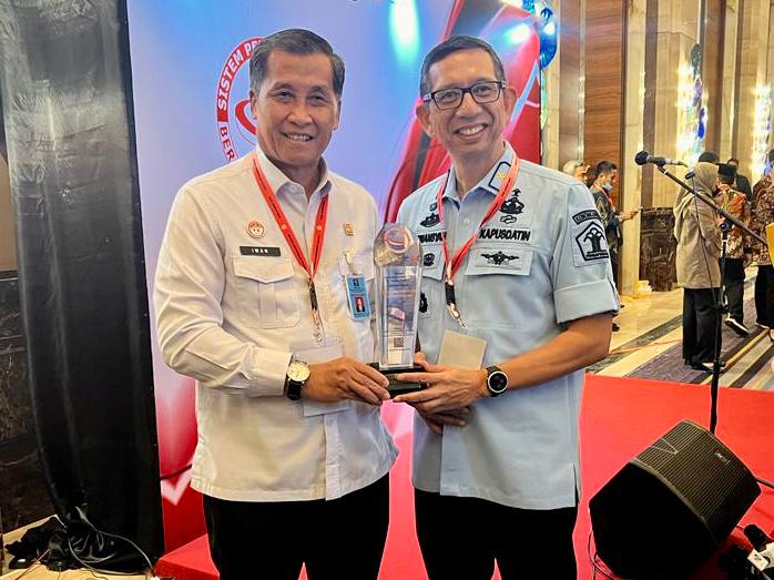 Penghargaan diserahkan oleh Menteri Koordinator Bidang Maritim dan Investasi, Luhut Binsar Pandjaitan didampingi Menteri Pendayagunaan Aparatur Negara dan Reformasi Birokrasi (PANRB), Abdullah Azwar Anas dalam acara SPBE Summit 2023, Senin (20/03/2023) di Hotel Kempinski Jakarta.