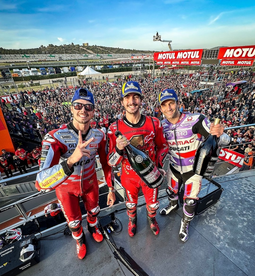 Jatuhnya Jorge Martin membuat Francesco Bagnaia otomatis mengunci gelar. Meski sempat melorot setelah disalip duo KTM, Bagnaia bisa kembali ke depan karena Jack Miller terjatuh jelang masuki lap ke-20.