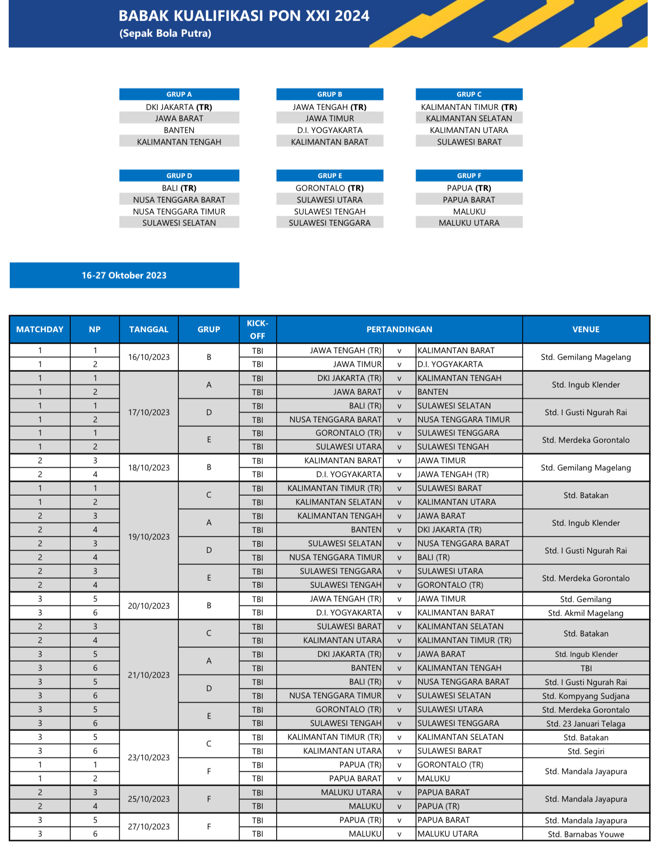 Pembagian grup dan jadwal pertandingan babak prakualifikasi PON cabor sepakbola.