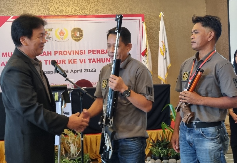 Pendirian sekolah menembak ini ditandai dengan penyerahan senjata pistol dan senapan di sela pembukaan Musprov VI Perbakin Kaltim 2023 di Ballroom Jatra Hotel, Balikpapan, Sabtu (29/4/2023) pagi.