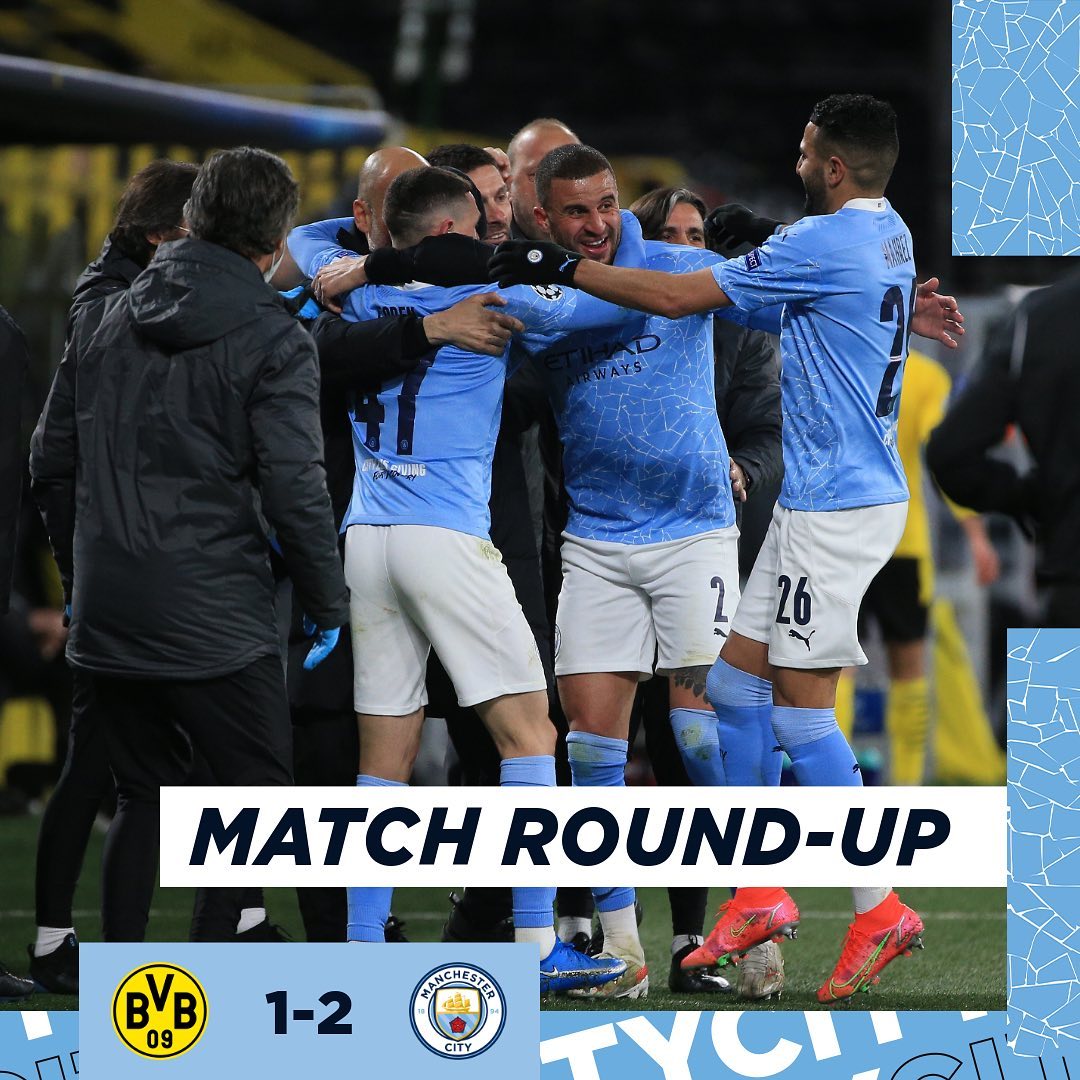 Kemenangan ini memastikan Man City melaju ke semifinal. The Citizens unggul agregat 4-2 setelah pada leg pertama juga berhasil mengalahkan Dortmund dengan skor 2-1.