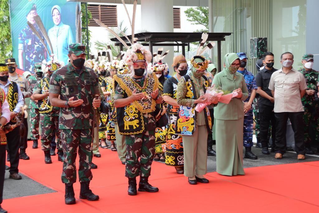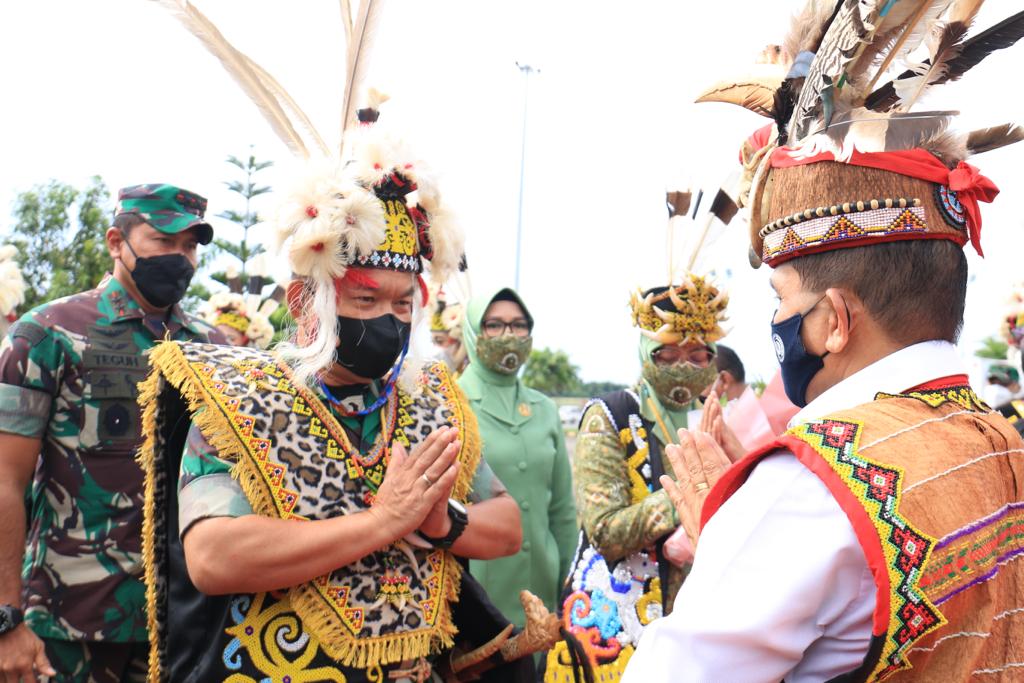 Selain disambut oleh Forkopimda dan para Pejabat Utama Kodam, kedatangan orang nomor satu di Angkatan Darat ini juga disambut dengan Tradisi Adat Tepung Tawar dan Tari Datun Julud yang merupakan tradisi penyambutan tamu di Kalimantan Timur.