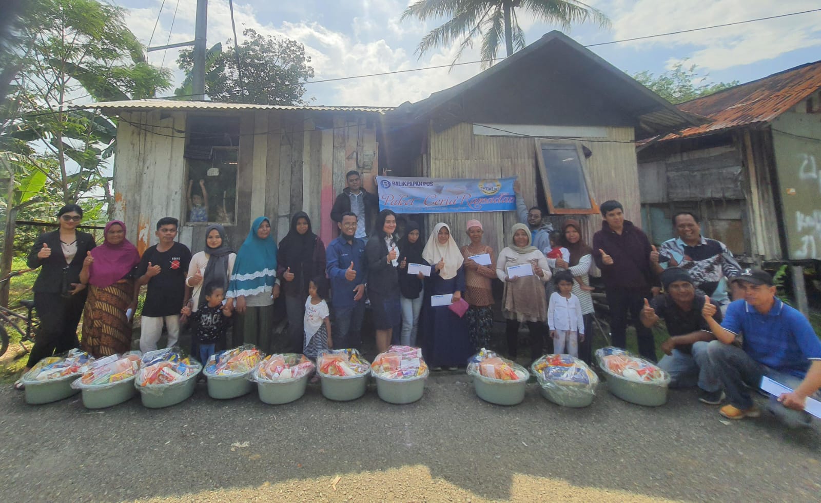 Supervisor Customer Service PTMB Suryo Hadi Prabowo bersama Assistant Marketing Manager Platinum Hotel Balikpapan Zizi menyerahkan paket kepada 12 Kepala Keluarga.