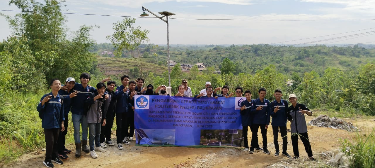 KaltimKita.com, BALIKPAPAN - Politeknik Negeri Balikpapan kembali berkontribusi teknologi berupa penerangan lampu jalan berteknologi solar cell dan teknologi photocell.