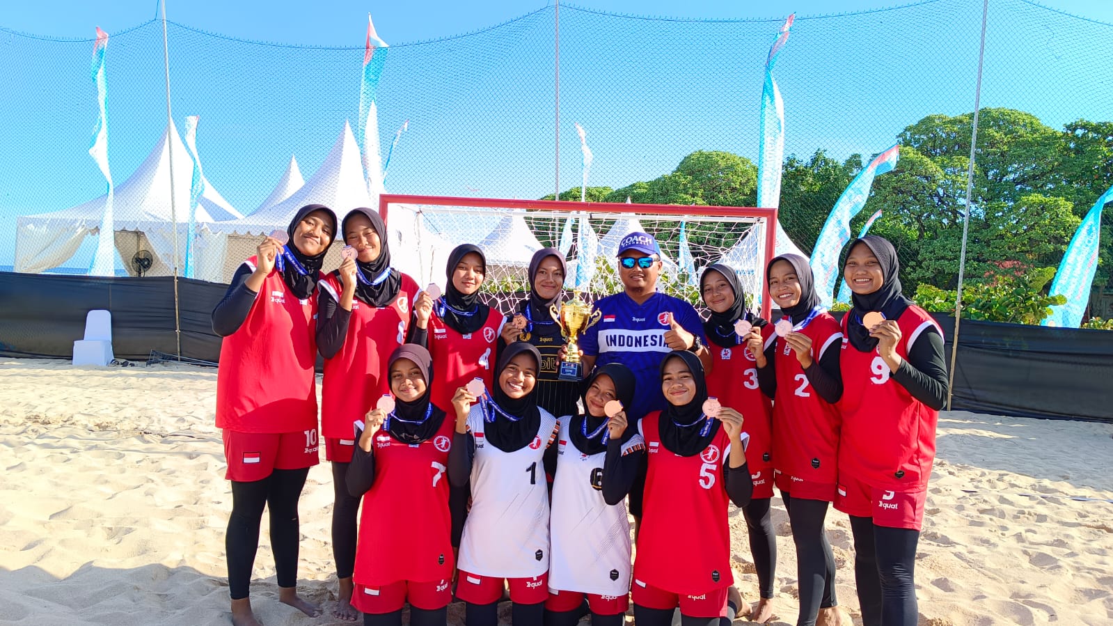 KaltimKita.com, BALI - Hasil cukup memuaskan didapat tim putri pantai Indonesia. Mereka sukses meraih peringkat ketiga dalam ajang Asian Beach Handball Competition 2023, 9-13 Maret 2023. Dalam ajang ini, tim putri Vietnam keluar sebagai juara. Sayang tim putra gagal memberikan medali bagi Indonesia.