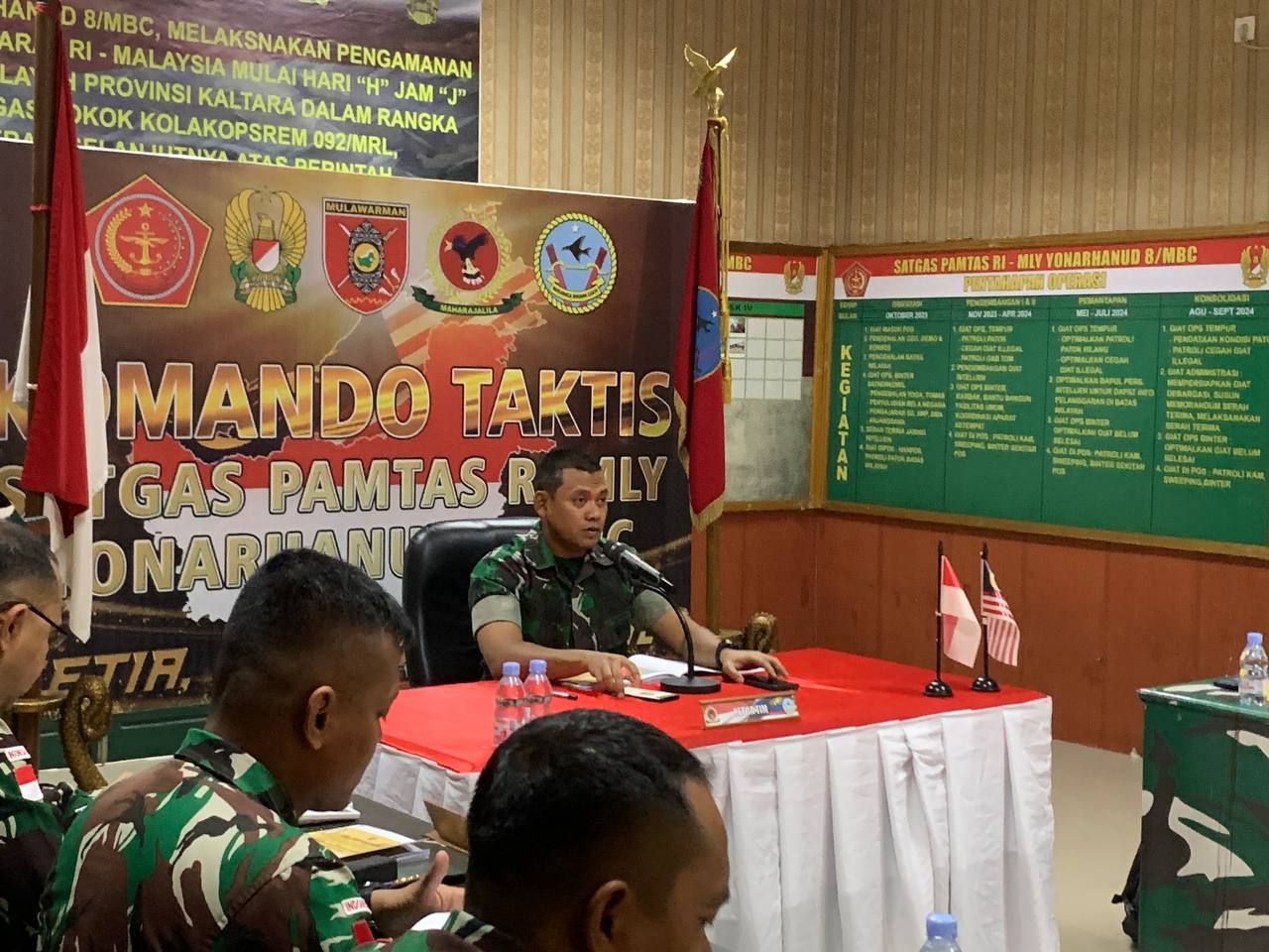 Kegiatan diawali dengan paparan Dansatgas Pamtas RI - Malaysia Batalyon Arhanud 8/MBC Letkol Arh Iwan Hermaya S.I.P.,M.I.P. tentang pelaksanaan Satgas Pamtas RI - Malaysia Batalyon Arhanud 8/MBC dilanjutkan pengarahan Ketua Tim Wasops Sopsad.