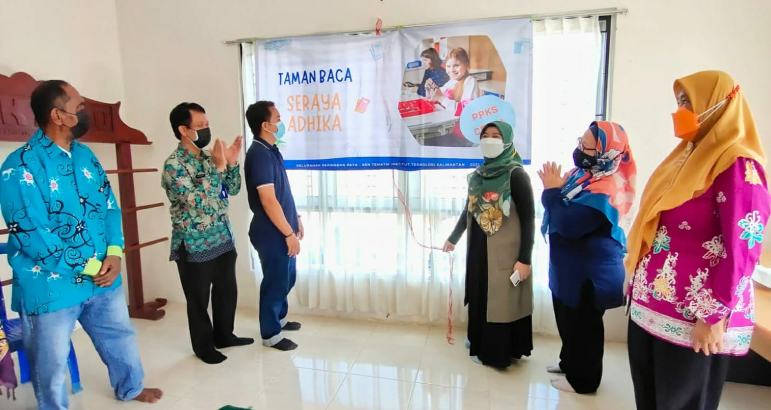 Nah pada Jumat (17/9/2021), ITK bersama Dinas Pemberdayaan Perempuan, Perlindungan Anak dan Keluarga Berencana (DP3AKB), Kantor Perpustakaan Daerah dan Arsip (Perpustakar), Penyuluh KB Kecamatan, PKB kelurahan, pengurus Kampung KB dan Rumah Data dan Tim Penggerak PKK serta Kelurahan Sepinggan Raya meresmikan Taman Bacaan Seraya Adhika.