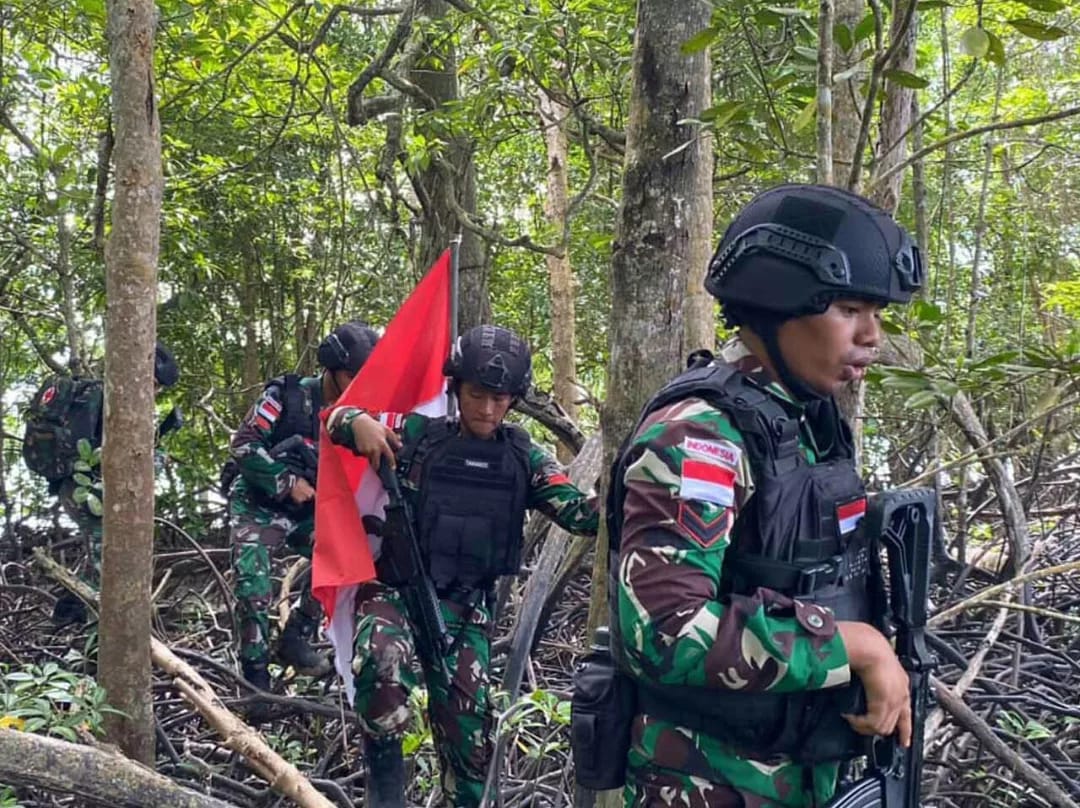 Kaltimkita.com, NUNUKAN- Satgas Pamtas Batalyon Arhanud 8/MBC melaksanakan Patroli Keamanan Wilayah di Areal Tambak Pulau Kinabasan Sei Kaca. Kec. Simanggaris. Minggu (3/12/23)