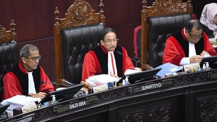 “Menolak permohonan pemohon untuk seluruhnya,” ujar Ketua MK Suhartoyo dalam persidangan di Gedung MK, Jakarta Pusat, Senin (22/4/2024).