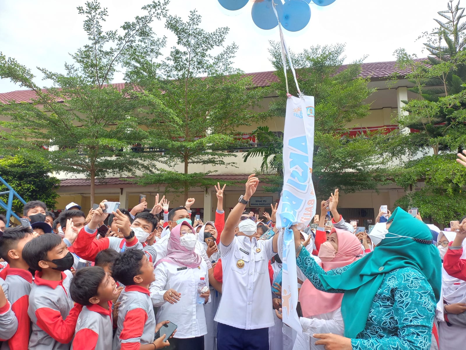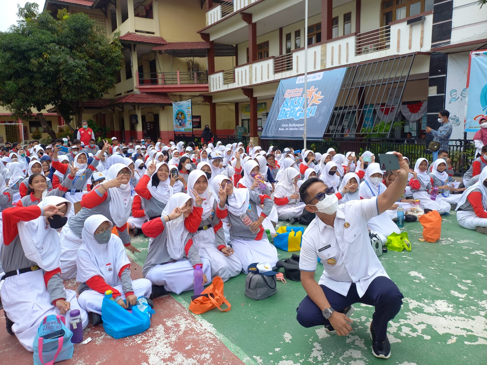 Aksi Bergizi di SMP Negeri 1 dan SMA Negeri 1, Rabu (26/10/2022), sekaligus ikut berpartisipasi dalam Pemecahan Rekor MURI Minum Tablet Tambah Darah (TTD) Serentak di Sekolah Seluruh Indonesia.