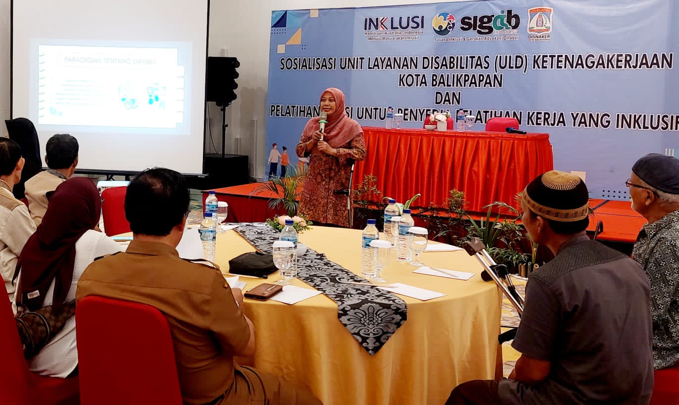 Kaltimkita.com, BALIKPAPAN - Sasana Inklusi dan Gerakan Advokasi Difabel (Sigab) berkolaborasi bersama Dinas Ketenagakerjaan (Disnaker) kota Balikpapan, menggelar sosialisasi Unit Layananan Disabilitas (ULD) ketenagakerjaan dan pelatihan gedsi untuk penyedia pelatihan kerja yang inklusif.