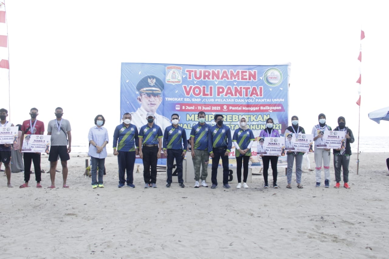 KaltimKita.com, BALIKPAPAN - Tuntas sudah perhelatan Turnamen Voli indoor dan pantai bertajuk Walikota Cup 2021. Kategori pantai menjadi penutup event garapan Dinas Pemuda Olahraga dan Pariwisata (DPOP) Balikpapan dan Pengcab PBVSI Balikpapan di Pantai Manggar Segara Sari, Jumat (11/6/2021).