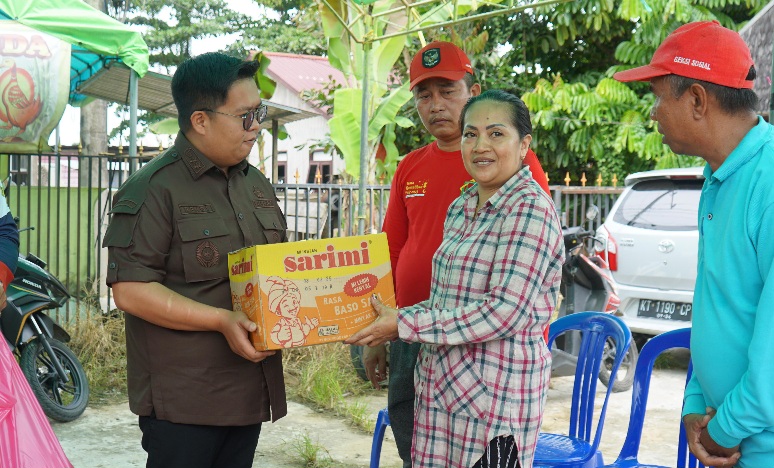 Didampingi Sukono, Camat Tenggarong, Rendi Solihin menyerahkan langsung bantuan berupa sembako, air mineral dan jenis bantuan lainnya kepada masyarakat korban kebakaran.
