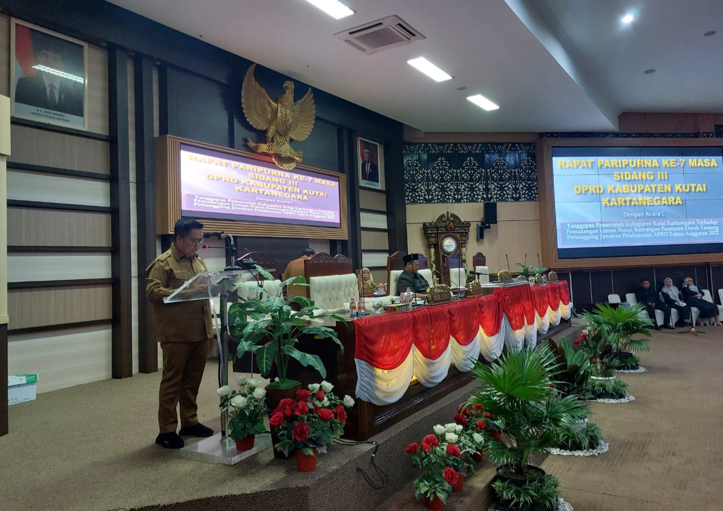 Kaltimkita.com, KUTAI KARTANEGARA – Wakil Bupati Kutai Kartanegara Rendi Solihin, membacakan Laporan pertanggungjawaban pelaksanaan Anggaran APBD 2022 dalam Sidang Paripurna DPRD Kukar Masa Sidang III, Senin (12/6/2023).