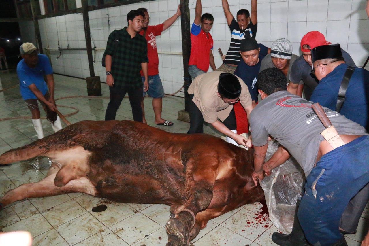 Penyembelihan di Masjid Agung At Taqwa Balikpapan dilakukan oleh imam, takmir dan marbot masjid di antaranya ustaz Gazali, H Asrul, Hari Supriyono, Aulia Rachman Lc, MH, Khairil Budiman dan H Anshori. Itu sebabnya saya tak berani masuk ke wilayah itu.