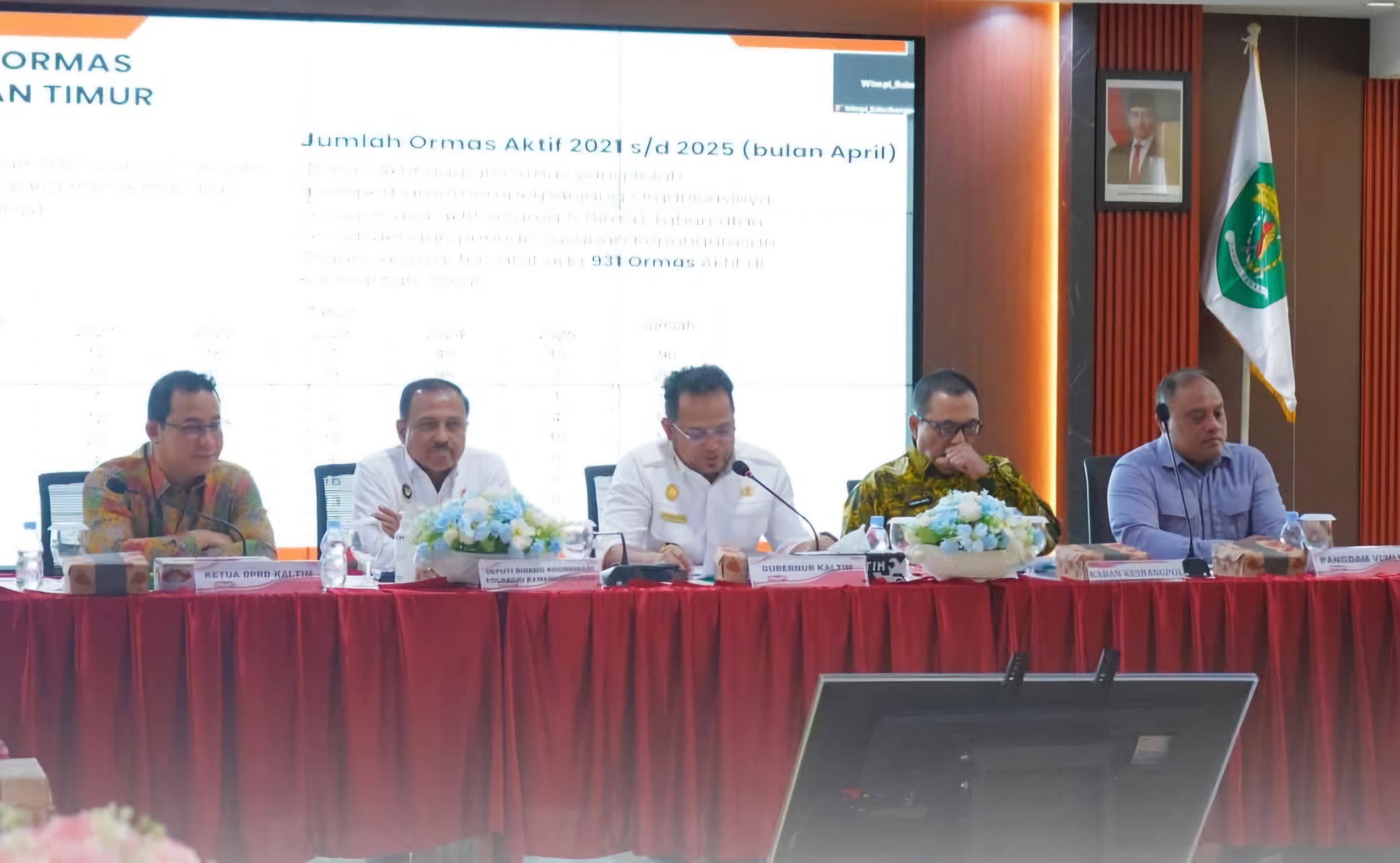 Rapat ini dihadiri Gubernur Kaltim Rudy Mas’ud, Deputi Bidang Koordinasi Politik Dalam Negeri Kemenko Polhukam Mayjen TNI Heri Wiranto, Kepala Badan Kesbangpol Kaltim Sufian Agus, perwakilan Forkopimda Kaltim, Pimpinan Ormas se-Kaltim.