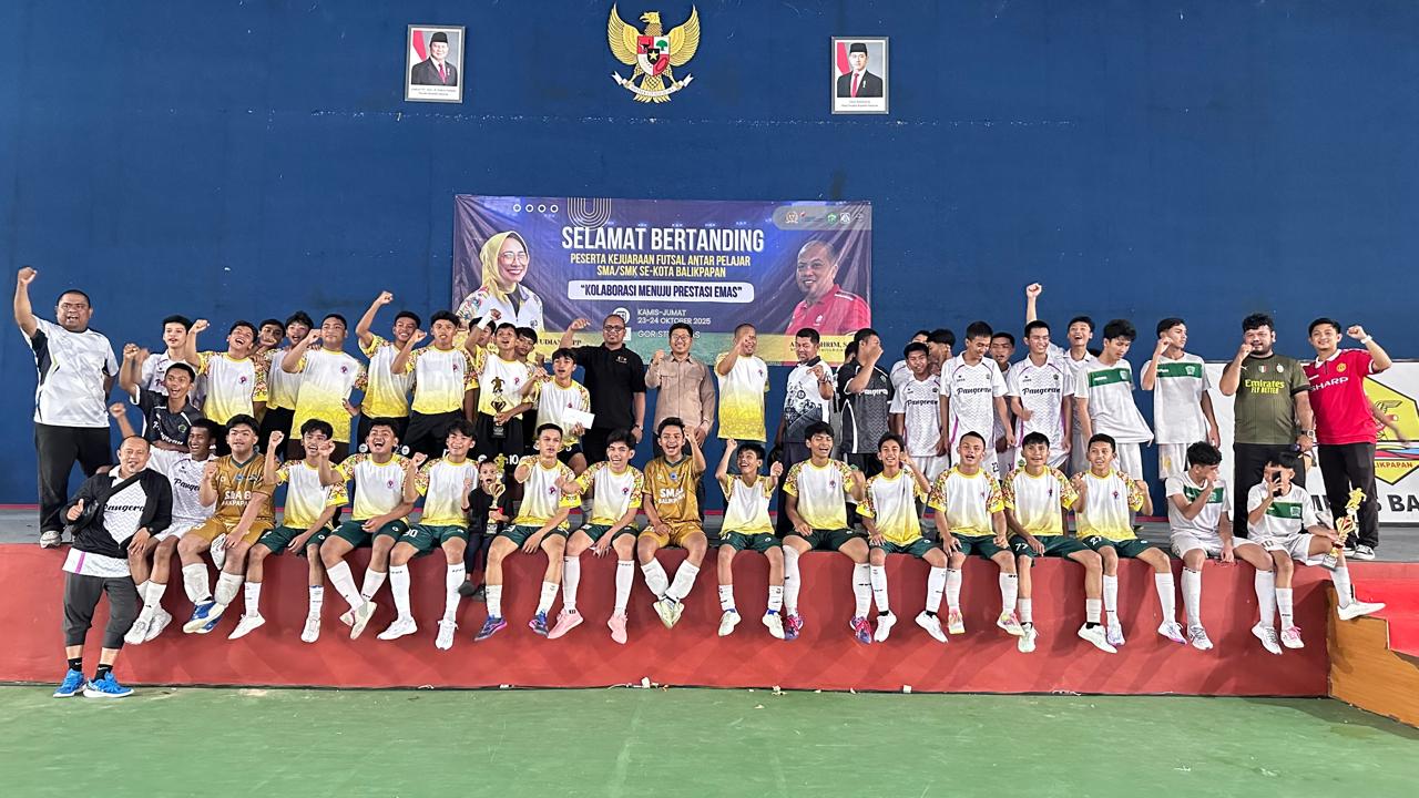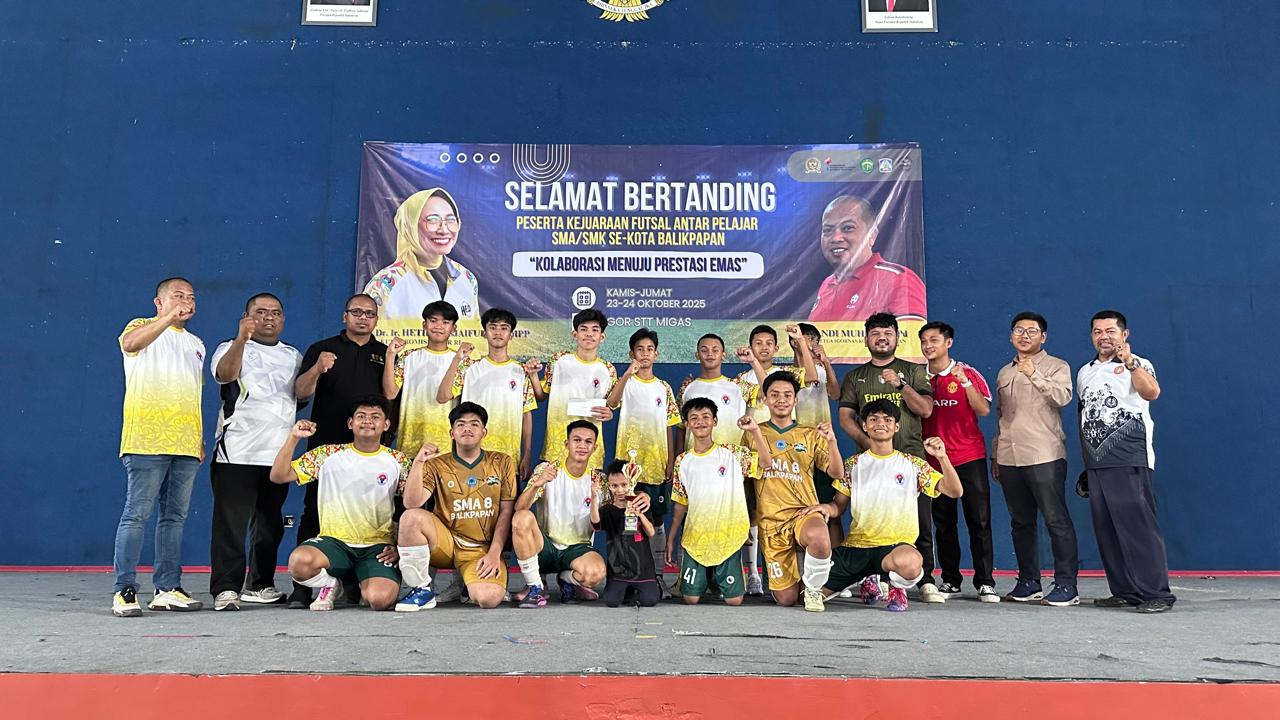 KaltimKita.com, BALIKPAPAN - SMAN 8 sukses meraih juara Igornas Cup 2025 dalam ajang Turnamen Futsal se-Balikpapan garapan Ikatan Guru Olahraga Nasional (Igornas) Balikpapan, Kemenpora, dan Komisi X DPR RI. Berlangsung di Lapangan STT Migas, Jumat (25/10/2025), di babak puncak anak asuhan Aulia Rahman menang tipis 1-0 atas SMAN 3 Balikpapan.
